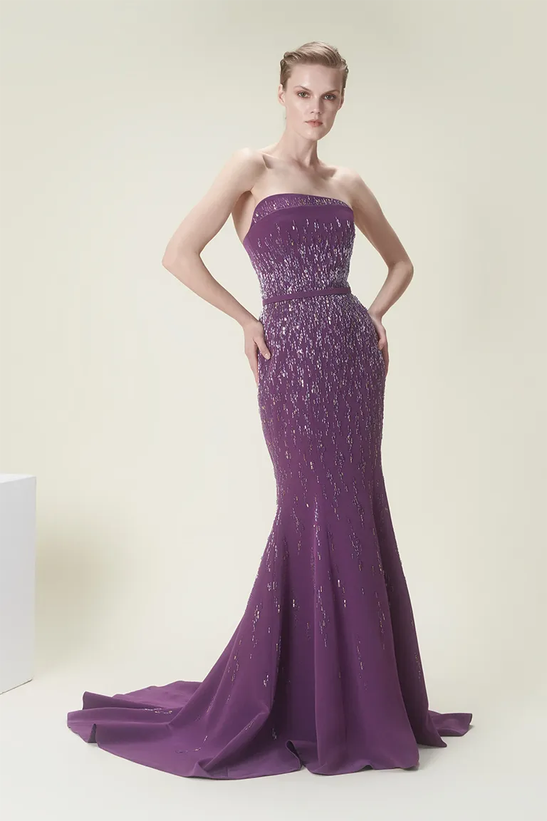 فستان بأبعاد غير منتظمة وقصة تحاكي ذيل السمكة