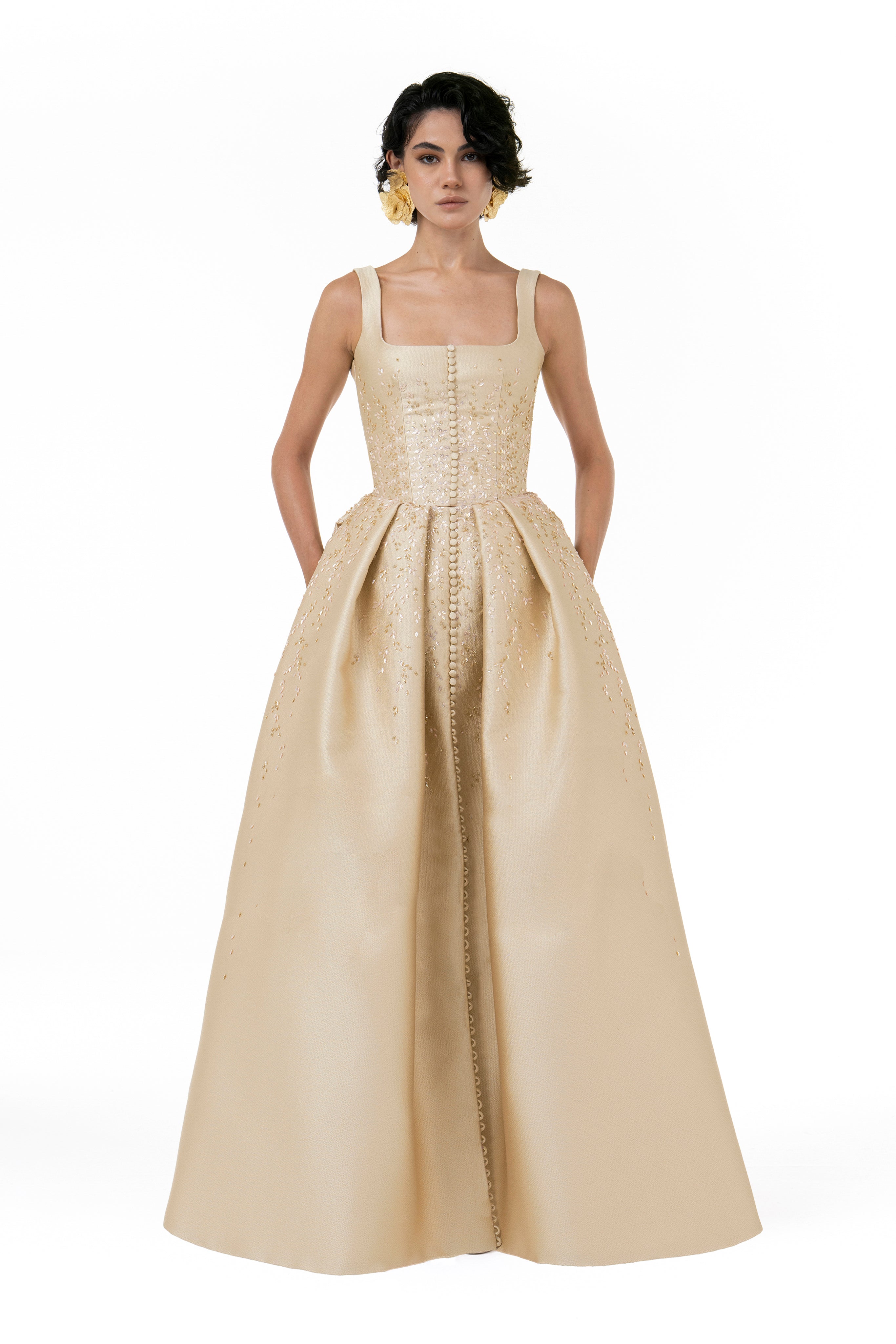 فستان طويل مرصّع بالخرز السعر بعد الخصم$3,140.00